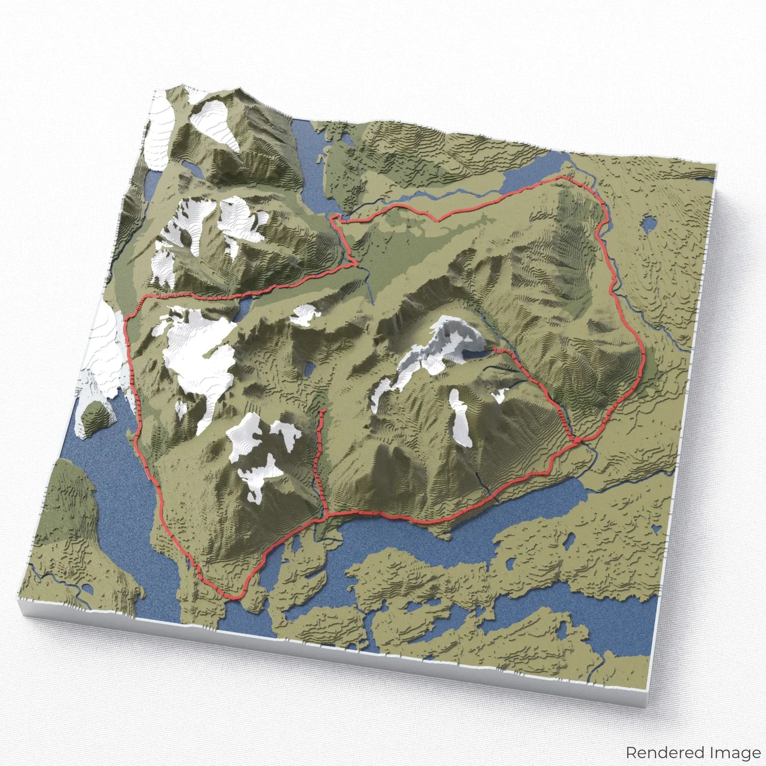 3D-Karten von Wanderwegen und Gebieten in Nordamerika